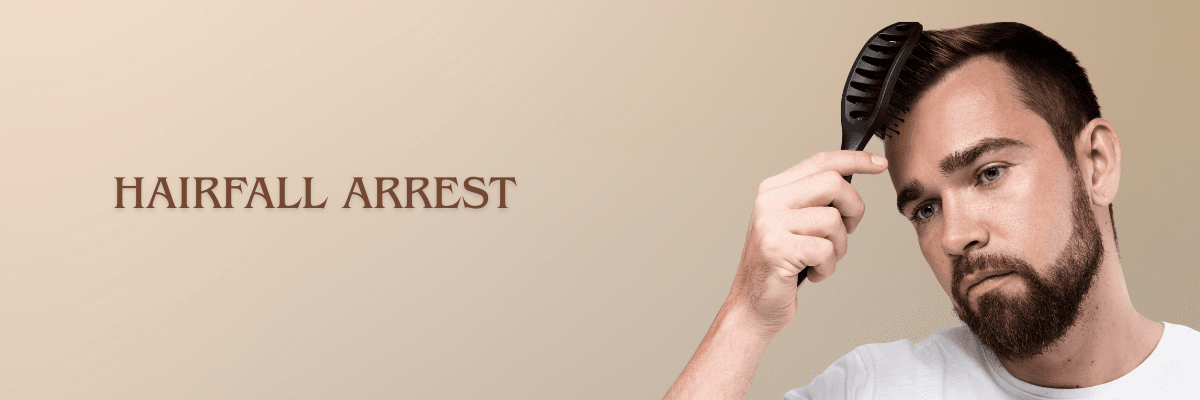 At Renew Derma, our Hairfall Arrest solutions address the root causes of hair fall and develop a plan specifically for you to address this concern. Our solutions involve a combination of expert analysis and advanced technologies that strengthen hair follicles, reduce inflammation, and promote a healthy scalp to slow down hair fall and encourage healthy hair growth.